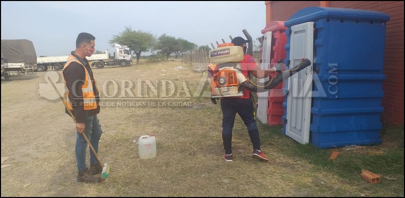 Personal municipal dependiente de la dirección de Espacios Verdes trabaja de manera diaria en el mantenimiento de lo que es la limpieza de los baños químicos instalados en la playa de camiones alado del Polideportivo Municipal, esos sanitarios portátiles fueron colocados especialmente pensando en las condiciones de aquellos conductores y acompañantes que viajan durante días para transportar mercaderías hasta la ciudad de Clorinda y que como cualquier otra persona tienen sus necesidades por ello de haber facilitado estos elementos desde que se cambió el lugar de estacionamiento para los camiones que entran a Clorinda, cuestión que se cambió debido a que los de transporte internacional entran a la playa ubicada después del taller municipal.