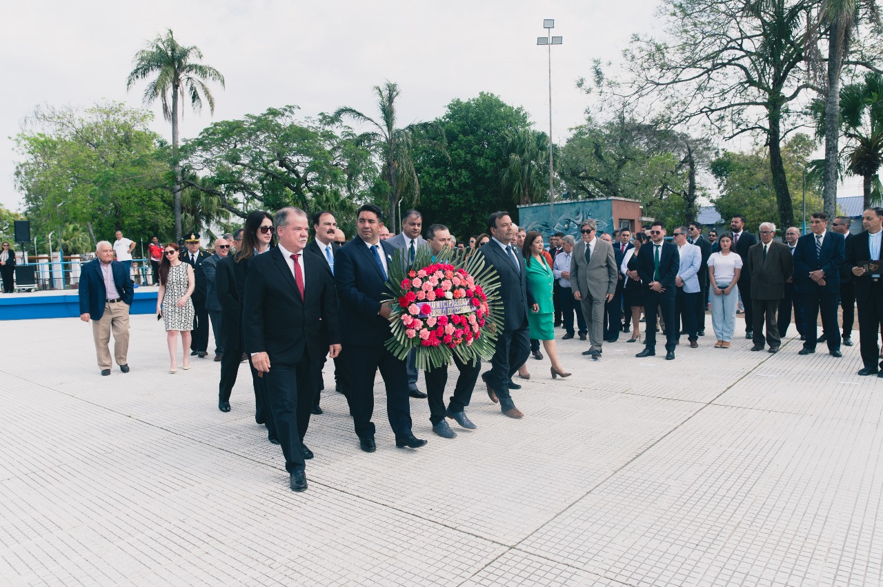 La plaza San Martín fue el lugar donde se llevo a cabo el acto en conmemoración al 126° aniversario de la ciudad de Clorinda, dicho acto estuvo encabezado por el Intendente Ariel Caniza y lo acompañaron el Vicepresidente del Concejo Deliberante Nelson Gutiérrez, el Diputado Provincial Sinforiano López, el Convencional Constituyente Fermín Caballero, autoridades del ejecutivo y legislativo, autoridades de las fuerzas de seguridad, del Consulado Paraguayo en Clorinda, del sistema educativo y vecinos de la ciudad.