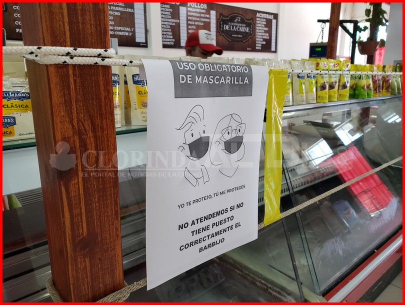 Un detalle que tal vez para algunos puede caer mal, pero es una forma de cuidar al personal del comercio y de cuidar al cliente, este tipo de medidas que se toman con la única intención de preservar la salud de las personas no se ven en todas partes, hay algunos negocios que la adoptan y son dignas de resaltar ya que aportan a cuidado sanitario de cada uno. Dialogando con Marcelo Galeano, propietario de El Supermercado de la Carne, este nos mostraba todas las medidas sanitarias que toman respecto a esto del coronavirus, uso obligatorio del barbijo, alcohol en gel al ingreso al local, distancia social entre clientes y además estas recomendaciones o avisos para el cliente que si no tienen como debe el barbijo, no será atendido, detalles que buscan que desde su lugar puedan acostumbrar a los clientes.