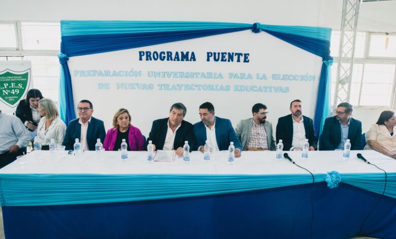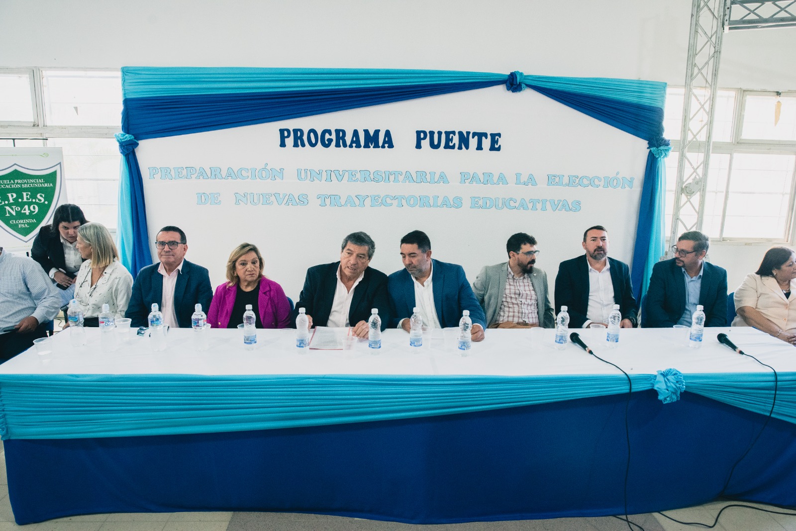 El pasado viernes por la mañana en las instalaciones de la EPES N°49 “Gral. San Martín” lanzaron la 3° edición del programa PUENTE, de dicho acto participaron autoridades provinciales como el Ministro de Cultura y Educación Ing. Julio Araoz, quien fue recibido por el Intendente de la ciudad de Clorinda Don Ariel Caniza, además participaron el Subsecretario de Educación Lic. Luis Ramírez Méndez, el Secretario de Gobierno Municipal Contador Marcelo Fernández, los Diputados Provinciales Alejandro Navas y Azucena Santillán, la Presidenta del Concejo Deliberante Profesora Mónica Acosta, el Rector de la UPLaB Licenciado Adrián Muracciole, la Delegada de Educación de Clorinda Licenciada Feliciana Coronel, entre otras autoridades de diferentes instituciones educativas, alumnos de los últimos años de cada escuela de nivel medio, y demás autoridades.