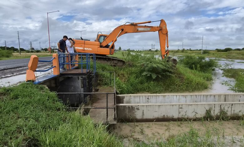 El trabajo fue cerrar la compuerta y además para asegurar, bloquear con terraplén, el ingreso del agua que viene de un sector habitacional pero principalmente de la zona de campos que baja masivamente en las últimas horas ya que hubo mucha lluvia hacia la línea del interior.