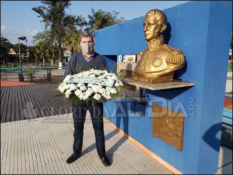 La ciudad de Clorinda se encuentra en fase 1 por recomendación del Consejo Integral de la Emergencia COVID-19 y por ello este 17 de agosto al haberse conmemorado un nuevo aniversario del fallecimiento del Gral. José de San Martín,  la Municipalidad de Clorinda cumplió con el protocolo ante una fecha tan importante y desde la Dirección de Ceremonial y Protocolo realizaron la colocación de una ofrenda floral al pie del busto del padre de la Patria. Luis Scotta como responsable del área señalada fue el encargado de acercar la ofrenda floral a la plaza San Martín y así con ello cumplir con el protocolo por conmemorarse el 170° aniversario de la muerte del General San Martín, “por pedido del Intendente Manuel Celauro procedemos a realizar la colocación de esta ofrenda en nombre del municipio y pueblo de Clorinda” decía Scotta.