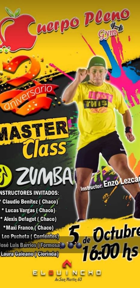 Enzo Lezcano junto a instructores de Formosa, Chaco y Corrientes te invitan a bailar 3 horas a pura ZUMBA el día Sábado 5 de Octubre en EL QUINCHO (Av. San Martín 63) Mañana Jueves 19 De Septiembre se lanzan las primeras 100 Pulseras anticipadas con un Valor de $200.