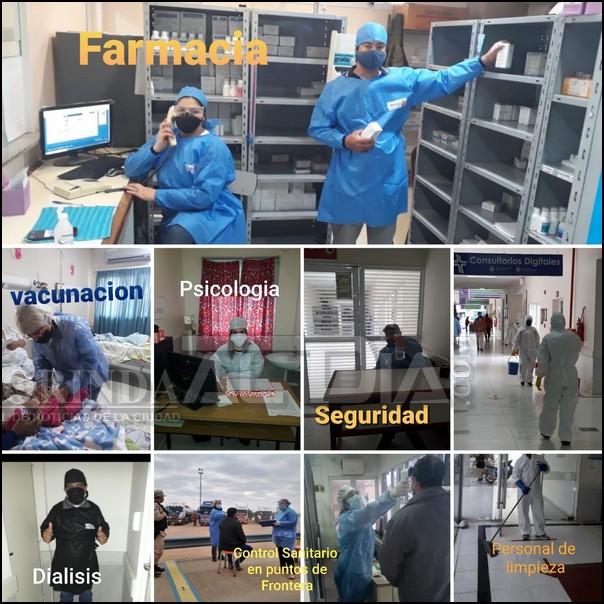 Tarea ardua, minuciosa y precisa teniendo en cuenta cada detalle comenzando con la organización del AREA COVID-UTI-SALAS DE AILAMIENTO-CAPACITACIONES al personal médico, enfermeros, limpieza, administrativos y todas aquellas personas esenciales en dicho trabajo. Implementación  del TRIAGE en el sector de consultorio externo y guardia con carteles explicativos de las medidas de distanciamiento, en donde primeramente se realiza toma de temperatura a cada persona que ingrese al hospital y colocación de alcohol en gel en las manos así como exigir el uso obligatorio y correcto de barbijo. Limpieza y desinfección en cajeros automáticos.