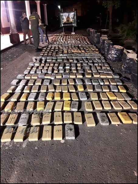 En total se procedió al secuestro de doce (12) cajas cubiertas con nylon de color negro, que contenían en su interior quinientos cuarenta y ocho (548) paquetes de marihuana con un peso cercano a los cuatrocientos ochenta kilos, sin poder dar con los responsables de las cajas.