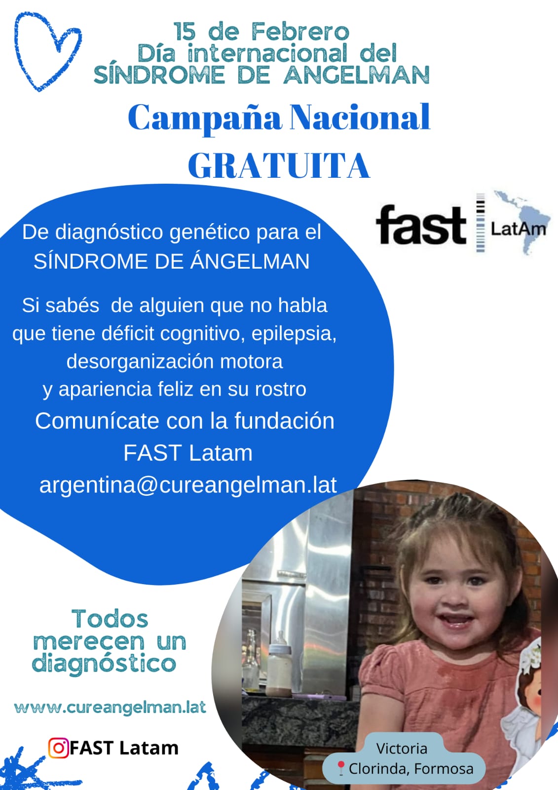 Este 15 de febrero es un día especial para miles de personas alrededor del mundo, ya que se conmemora el día del síndrome de Angelman, que es una condición neurogenética poco frecuente, que se cree que potencialmente afecta a más de 500.000 personas en todo el mundo, o 1:15.000 nacimientos. Las personas con SA suelen tener problemas de equilibrio, deterioro motor y pueden sufrir convulsiones debilitantes. Algunas personas nunca caminan. La mayoría no habla y muchos tienen dificultades para dormir. Además de estos desafíos, muchas personas con SA también tienen características de comportamiento únicas, como una conducta feliz, caracterizada por risas frecuentes, sonrisas y excitabilidad.