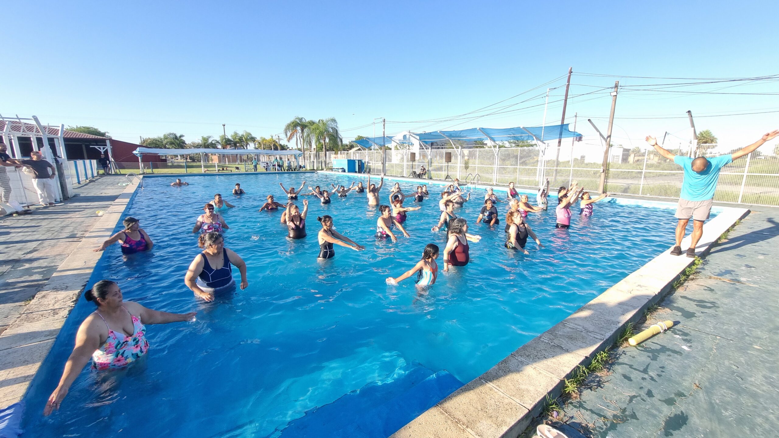 Se cumplió la segunda jornada de actividades de aquagym llevada adelante por la Municipalidad de Clorinda a través del programa Somos y el acompañamiento de la dirección de Deportes. Este jueves por la mañana se estuvo cumpliendo con el segundo encuentro que reunió a casi medio centenar de personas de distintas edades para aprovechar esta posibilidad de hacer actividad física especial en este caso en pileta y con el acompañamiento de un profesor que en este caso es Ariel Villalba.