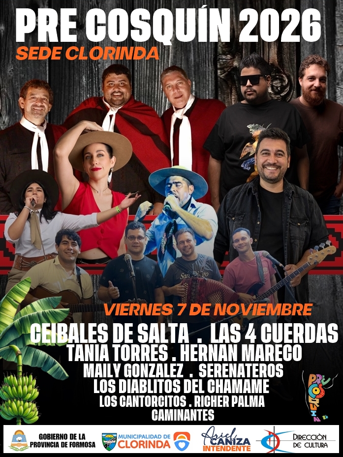 Este viernes 7 y sábado 8 de noviembre se estará llevando a cabo una nueva edición del festival Pre Cosquín 2026, que en Clorinda tiene la particularidad de estar desdoblada la parte competitiva y el festival. En lo referido a la competencia se dará en el salón de usos múltiples del Instituto Técnico San José, por ese escenario pasaran artistas de diferentes puntos del país que buscan llegar al máximo escenario del folclore nacional.
