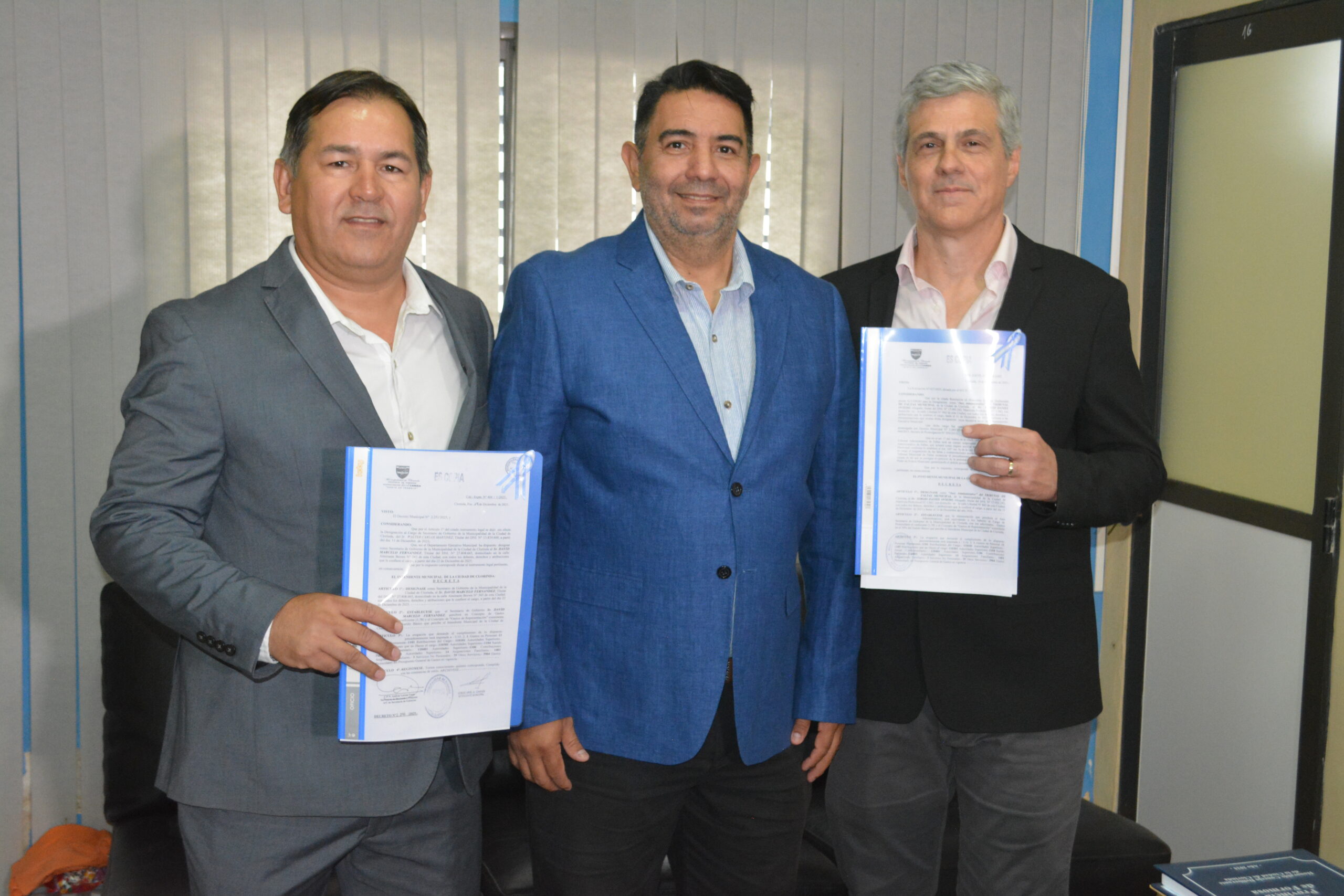 Este lunes por la mañana, en la sala de reuniones del ejecutivo clorindense se estuvo llevando a cabo el acto de toma de juramento a las nuevas autoridades que fueran convocadas por el Intendente Ariel Caniza para ocupar el Juzgado de faltas y la Secretaria de gobierno. Se trató de una ceremonia breve pero no por eso menos importante de la que participaron además del Intendente, la Presidente del Concejo Deliberante la Profesora Mónica Acosta, el Vicepresidente Doctor Oscar Virgona, la Secretaria de Hacienda Contadora Andrea Gaete, el Secretario Administrativo del HCD Walter Martínez, familiares de los nuevos funcionarios y medios de comunicación.