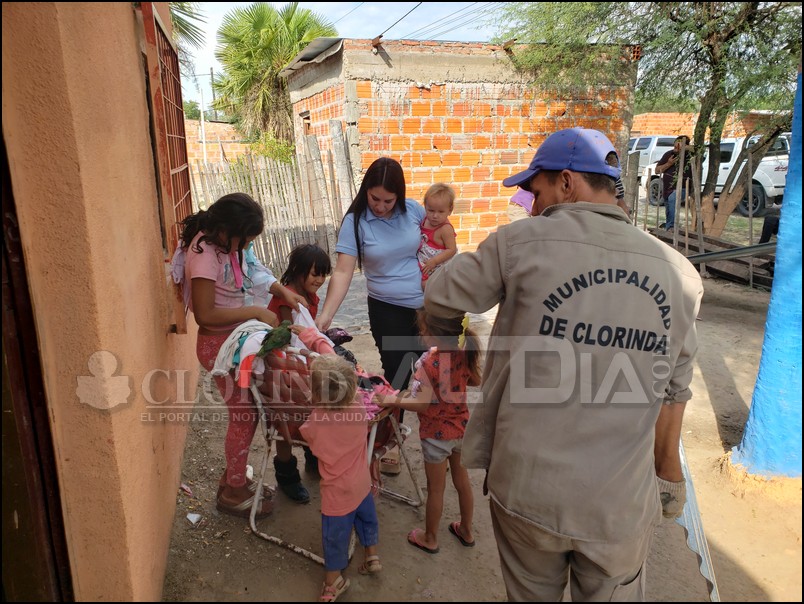 El pasado lunes una precaria vivienda ubicada en el barrio ACA de la ciudad de Clorinda termino totalmente consumido por las llamas, en ese domicilio vivían una joven madre, Andrea González y sus cinco nenas más su pareja, afortunadamente ninguno se encontraba dentro del inmueble al momento de ocurrir esta situación y por lo ocurrido se hizo presente personal del destacamento de bomberos que procedió a controlar el incendio para evitar que se extienda a otras habitaciones. Teniendo en cuenta lo ocurrido autoridades municipales se hicieron presentes con la finalidad de interiorizarse de lo ocurrido y verificar las necesidades de la familia que ya en la mañana del martes pudieron cubrir, el Presidente del Concejo Deliberante Ariel Caniza junto al Subsecretario de Desarrollo Humano Alejo Espínola, la Directora de Empleo Nadia Jara y el Delegado del Ministerio de la Comunidad Carlos Ortega fueron quienes junto a sus respectivos equipos se acercaron para llevar esta ayuda.