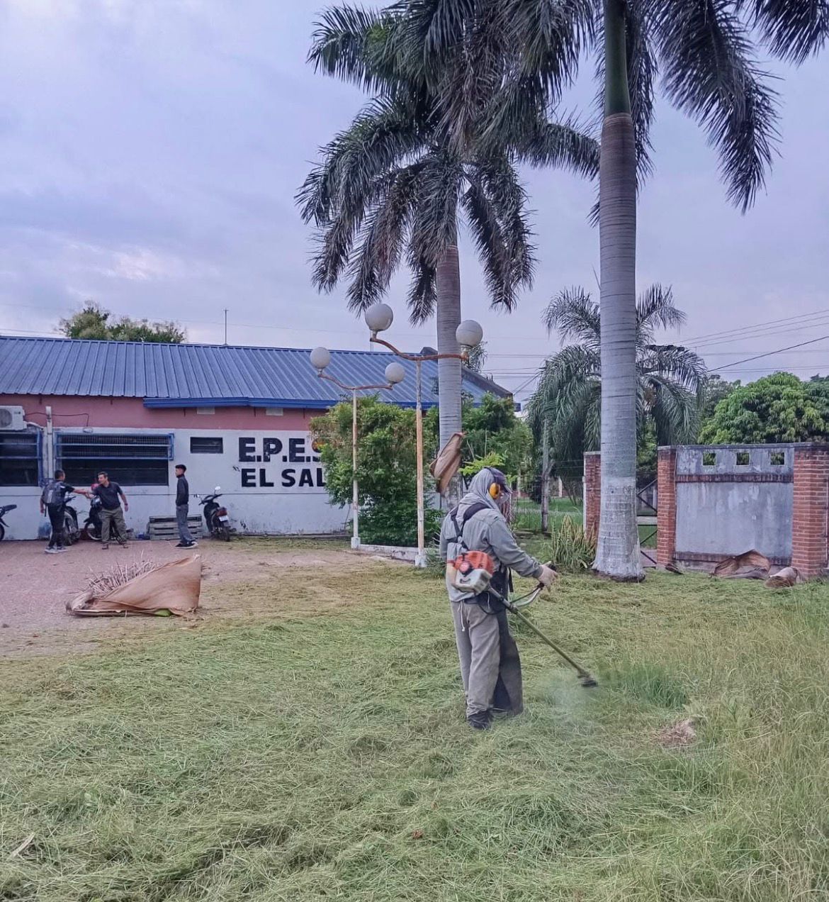 El trabajo puntual que se ejecuta es de desmalezado, aunque en los alrededores y en algunas instituciones se ejecutan otros trabajos complementarios para que los niños y niñas regresen con todo para iniciar las clases en este año. Son varias las instituciones que habrían solicitado la colaboración pertinente y se va dando lugar a esos pedidos, los espacios de las distintas escuelas de todos los niveles también sintieron los embates de las precipitaciones que generan rápido crecimiento de malezas.