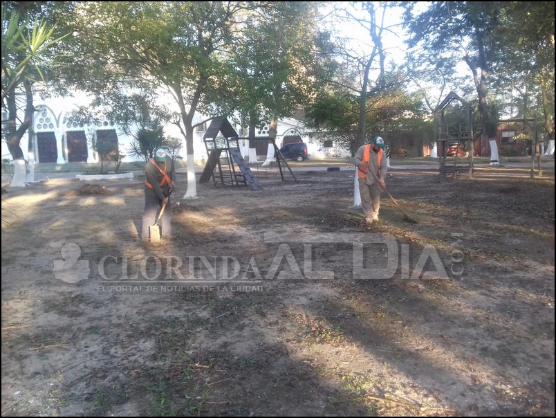 La comuna clorindense está trabajando y colaborando con la comunidad de la parroquia Nuestra Señora de los Ángeles que recordemos este viernes se conmemora la fiesta patronal de la misma, es patrona de la ciudad de Clorinda y por tal motivo se está desarrollando la novena y se preparan actividades especiales para las próximas horas como ser la serenata que se desarrollara esta noche de jueves desde las 21 hs. Y también la procesión por mencionar algunas de las actividades programadas, dentro de ese contexto el municipio colabora con la puesta a punto del predio, la gente de Espacios Verdes a cargo de Juan Carlos Morel realizaba la limpieza del predio y también otros detalles más ligados a lo que será la fiesta patronal.