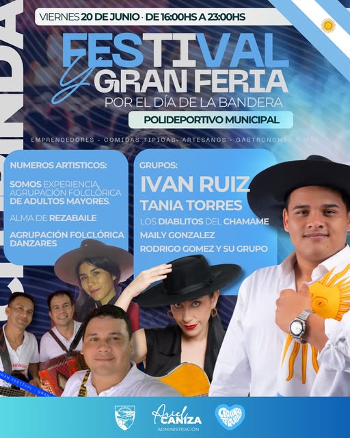 El Polideportivo Municipal será el lugar del evento que arrancara bien temprano para aprovechar la tarde cálida y evitar las temperaturas bajas de la noche y madrugada según nos informaron, por ello esta programado que los feriantes puedan iniciar su trabajo desde las 16 hs y los números artísticos en escenario arrancarían a las 17 hs. Mientras que el numero central, Iván Ruiz estaría subiendo alrededor de las 21 hs. Para cerrar una gran jornada patria.