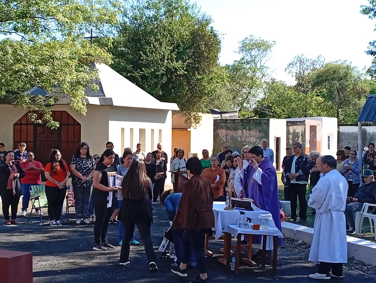 Todos los años, la cruz mayor más antigua es el lugar elegido para esta celebración que reúne a fieles habituales de la antes mencionada parroquia pero además a vecinos que se encuentran visitando a sus familiares en el Cementerio “La Piedad”. Acompañado a lo ligado a lo religioso, también está todo un amplio movimiento que se presenta en el cementerio y que tiene afectado a personal municipal del cementerio pero también otras áreas como asistencia social que con posta sanitaria por medio están al servicio de los vecinos que puedan llegar a requerir alguna asistencia.