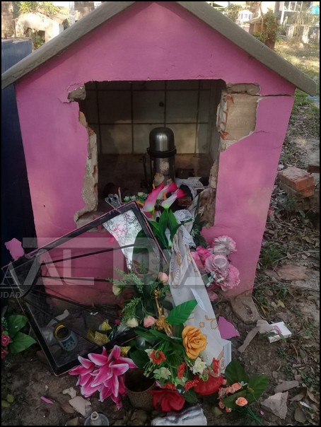 Tras el fin de semana se conocieron tristes imágenes en las que se observan daños provocados a los nichos y panteones de los seres queridos que se encuentran en campo santo. El Secretario de Gobierno Walter Martínez hizo referencia sobre esto y señaló que lamentaba mucho todo lo ocurrido y que entendía el dolor de esas familias que encontraron dañados los lugares donde permanecen los restos de sus seres queridos, comentó que el cementerio “La Piedad” cuenta con dos serenos, uno por cada acceso principal pero como se sabe las obras están sin concluir en lo referido al cerramiento y eso posibilita que inescrupulosos y delincuentes ingresen y generen estos daños, por lo cual insto a los damnificados a acercarse a la comisaria de Territorios Nacionales a radicar la denuncia. Serían unos tres panteones y diecinueve nichos los que aproximadamente fueron dañados y desconocen si se robaron algo.