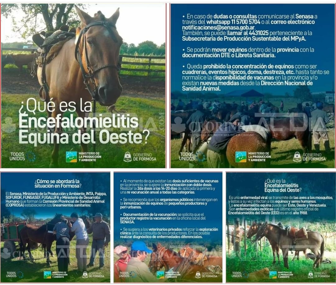 La Mesa Productiva local comunica que el SENASA mediante Resolución 1219/2023 declara el estado de Emergencia Sanitaria en todo el territorio nacional ante brotes de “Encefalomielitis Equina” en las provincias de Entre Ríos, Corrientes, Córdoba y Santa Fe.