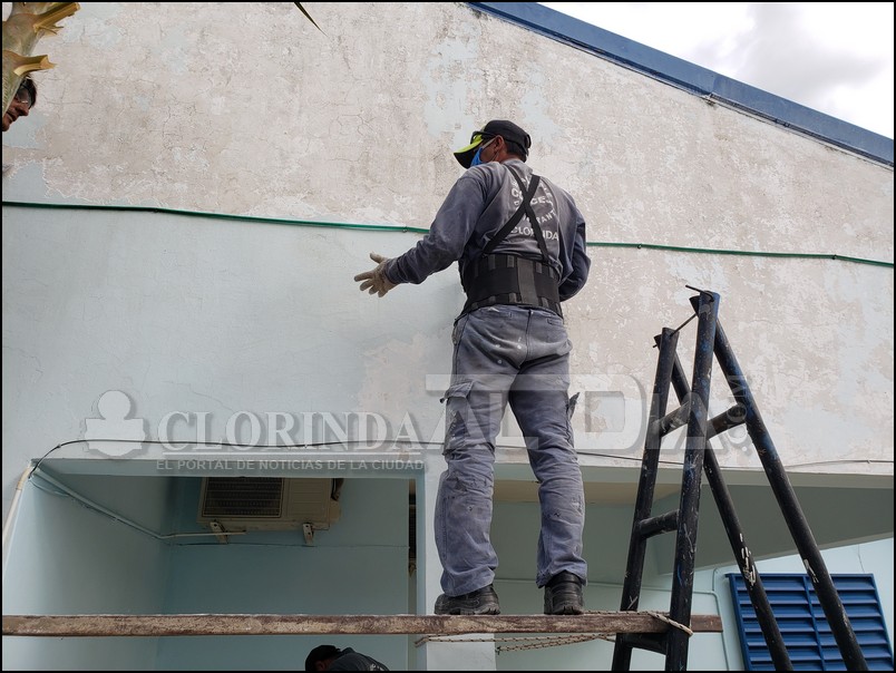 Existe un equipo destinado a lo que es el mantenimiento y la realización de diferentes trabajos internos en el Poder Legislativo clorindense, el Presidente Ariel Caniza nos manifestaba respecto a eso que casi de forma constante se viene ejecutando un plan de mantenimiento, ampliación y mejora de las condiciones, los diferentes bloques se han equipado y realizado el mantenimiento correspondiente, se trabajó en el patio interno, también en el predio que se encuentra detrás sobre calle Cancio donde se ilumino y mejoro las condiciones pero también es tarea constante el cuidado de los detalles de la sala de sesiones y ahora la fachada del edificio.