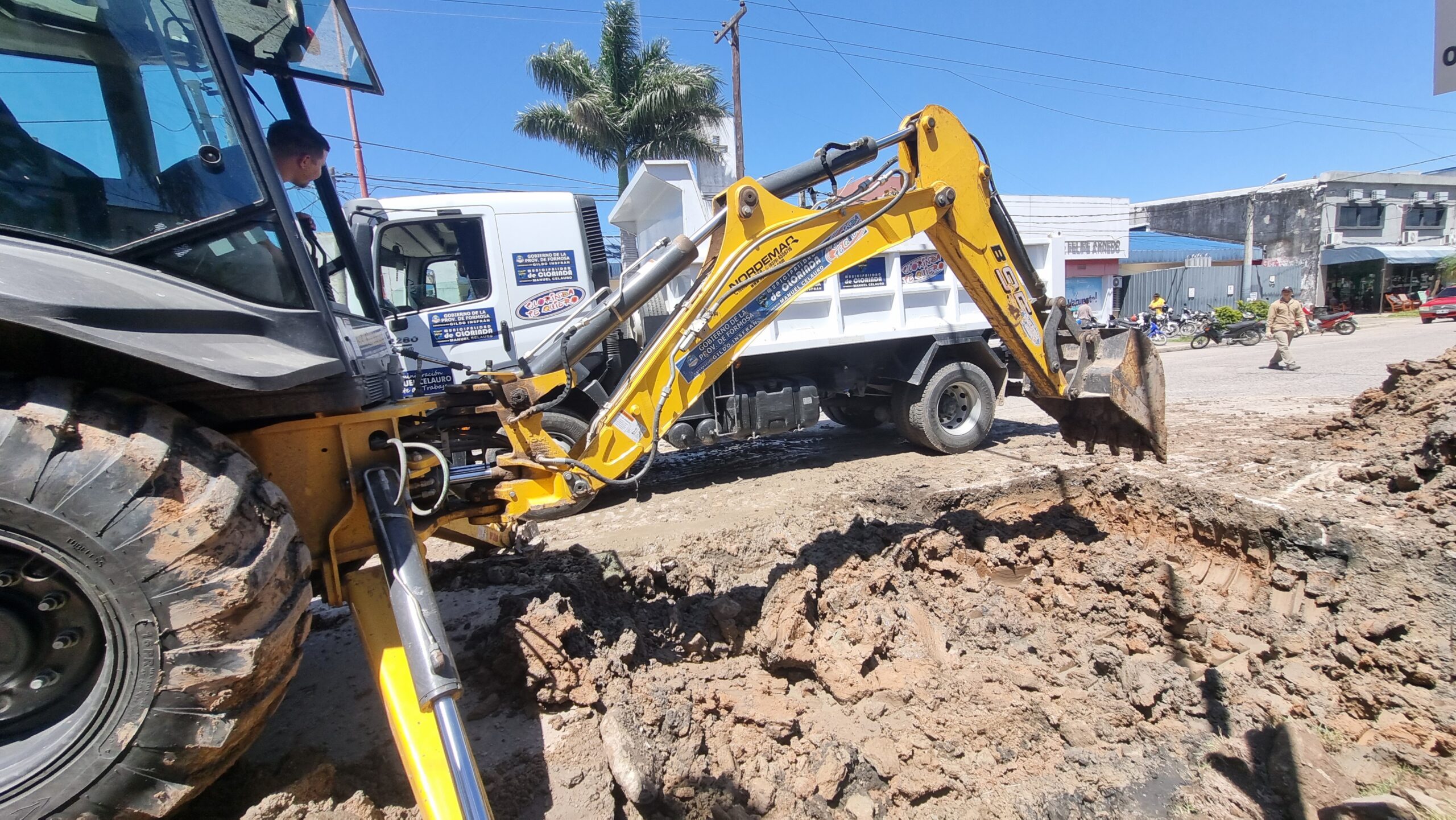 Los equipos municipales iniciaron el levantamiento de la losa e inmediatamente comenzaron a buscar el inconveniente, detectando que debajo del pavimento había mucha agua y barro producto de algún inconveniente de bastante tiempo y eso fue provocando el levantamiento del pavimento.