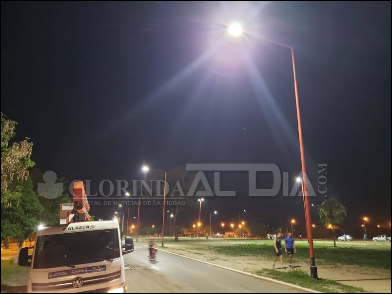 Ya contando con los recambios pertinentes las dos áreas de energía eléctrica del municipio, de Mantenimiento Eléctrico e Infraestructura Eléctrica han estado trabajando a pleno para tratar de solucionar lo mas rápido posible los daños del alumbrado público, alumbrado que resultara dañado por las descargas eléctricas del domingo por la madrugada y que como ya habíamos comentado con anterioridad dejo serios daños en varios sectores. Eugenio Mereles y su equipo a pesar de la lluvia de la mañana han estado trabajando en el reemplazo de los artefactos led quemados sobre la avenida España, las tareas se extendieron en parte de la mañana y toda la tarde cuando las condiciones climáticas mejoraron, también estuvieron trabajando en el sector de la colectora Virgen Delvalle donde, reemplazaron en total 24 artefactos, 12 del sistema led y otros 12 del sistema de sodio de 250 watts.