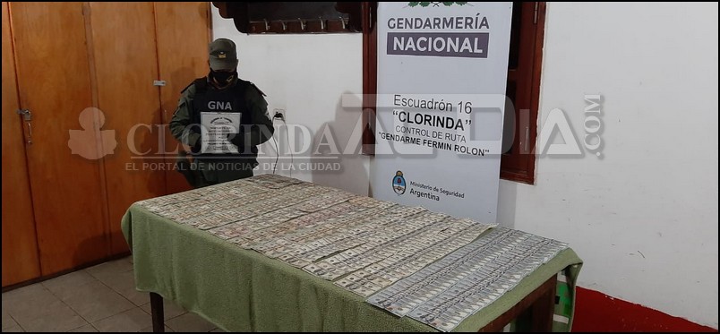 Gendarmería Nacional, que depende del Ministerio de Seguridad de la Nación, decomisó dólares estadounidenses sin la documentación correspondiente durante un procedimiento realizado en la Ciudad de Clorinda, provincia de Formosa. Personal del Escuadrón 16 “Clorinda”, en la provincia de Formosa, llevaban a cabo tareas de seguridad sobre la Ruta Nacional N° 11, a la altura del km 1286, cuando procedieron al control de un transporte de carga internacional proveniente del vecino País (Paraguay), con destino final Iquique (Chile). Durante el registro en el sector de la cabina del conductor, en el sector de la cucheta y debajo del colchón, los uniformados detectaron tres fajos de billetes de moneda extranjera (dólares estadounidenses), dos (2) fajos de Dos Mil (USD 2.000) dólares y uno (1) de Dos Mil Diez (USD 2.010) dólares, hallando también ocho (8) cartones de cigarrillos marca «Lucky Strike».