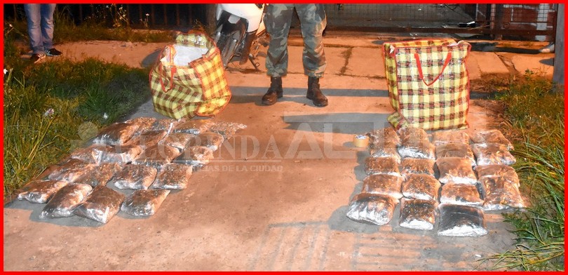 Ante tal circunstancia, el personal emplazado en el lugar, procedió a la incursión del escenario, donde lamotocicleta recién llegada logra huir del lugar, procediendo así a la detención del ciudadano que poseía en su poder las referidas bolsas. Seguidamente y con la asistencia de testigos, se procedió a la apertura de dichos bultos hallando en su interior Treinta y Nueve (39) paquetes embazados a vacío conteniendo estupefaciente marihuana. Inmediatamente, se tomó contacto con el Juzgado Federal Nro. 1 a Cargo del Dr. Pablo Moran, secretaria a cargo del Dr. Arturo Puyó y Fiscalía Federal Nro. 1 a cargo de la Dra. Elena Marisa Vazquez, quienes una vez interiorizados del caso, orientaron que se proceda a la incautación de la totalidad de la sustancia hallada, secuestro de un motovehículo y detención del ciudadano involucrado.