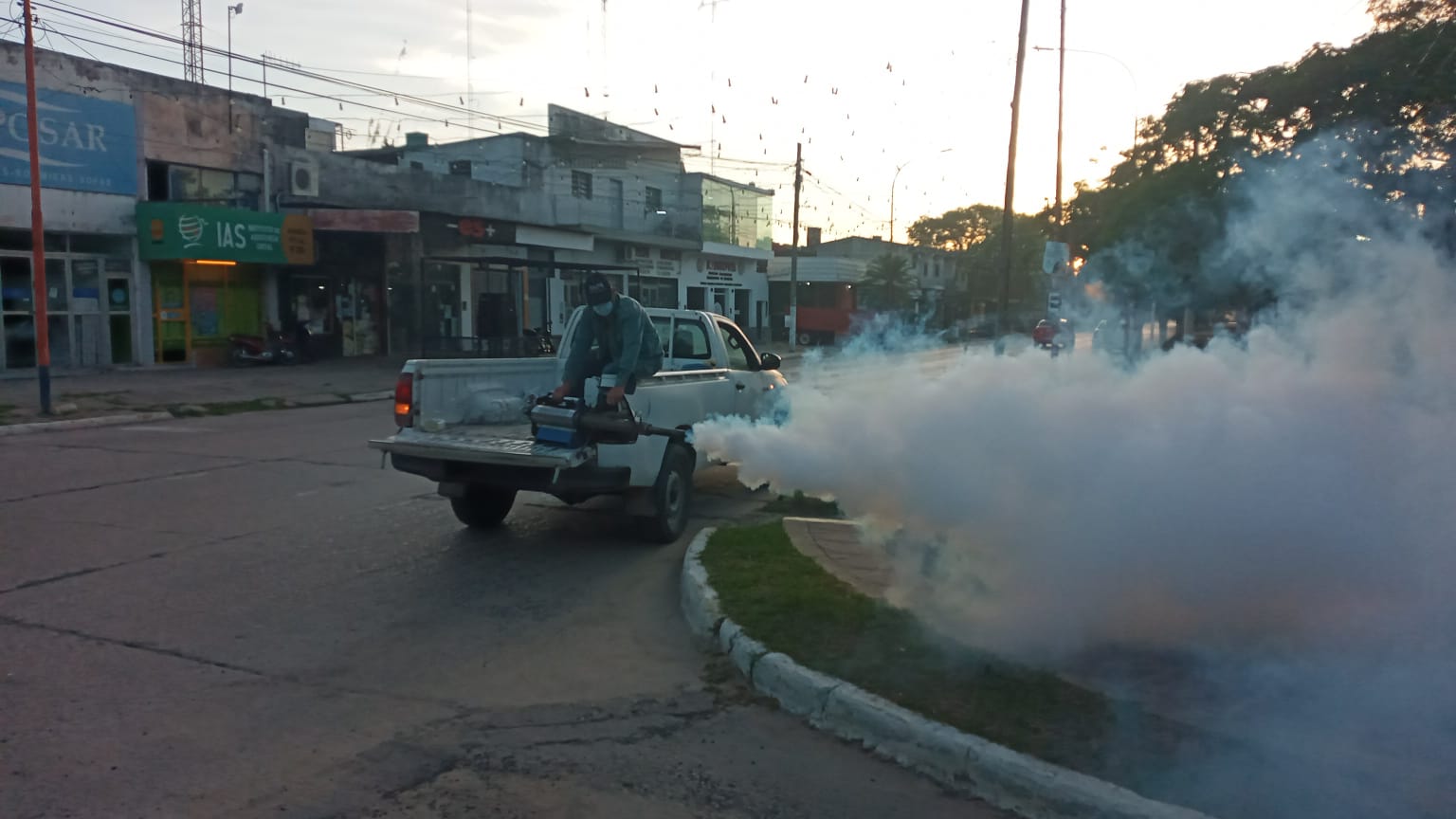 Tras las últimas lluvias hay una gran cantidad de mosquitos que son muy molestos, no se da en algún sector en particular sino en toda la ciudad e incluso la región. Ante eso hay un esquema especial de fumigación que esta desarrollando la gente de la base de Vectores y Zoonosis dependiente del Ministerio de Desarrollo Humano de la provincia de Formosa y que articula acciones con la Municipalidad de Clorinda que suma sus equipos para llegar a mas lugares y así fumigar de forma simultánea varios puntos.