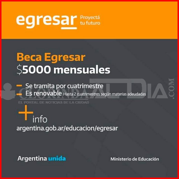 Fernando Lagraña es Director del área de la Juventud de la Municipalidad de Clorinda y nos mencionó la posibilidad que existe para alumnos que hayan concluido el secundario, pero adeudan materias, existen un plan denominado EGRESAR es de orden nacional y permitirá que quienes adeudan materias puedan cumplirla y así superar esa etapa con el agregado de que estarán percibiendo una ayuda económica mientras estén estudiando.
