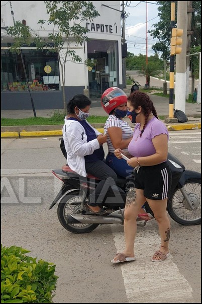 Miembros de la Dirección de la Juventud de la Municipalidad de Clorinda junto a jóvenes que forman parte de la Juventud Militante de Hombre Nuevo Formoseño salieron a las calles a iniciar la entrega de barbijos a la ciudadanía en general. Quienes forman parte de esta actividad nos comentaban que se trata de una iniciativa que se venía preparando hace días y que ya con los elementos necesarios salieron a las calles, un grupo en la zona centro, otro grupo en el sector del complejo habitacional y durante los días sucesivos estarán en diferentes puntos de nuestra ciudad ya que lo que se busca es que la gente tome conciencia y entre todos aportemos nuestro granito de arena en el cuidado sanitario a la hora de estar en la vía publica.