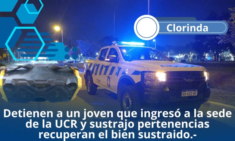La Policía procedió a la aprehensión de un joven y recupero un bien denunciado como sustraído de la sede de la UCR
