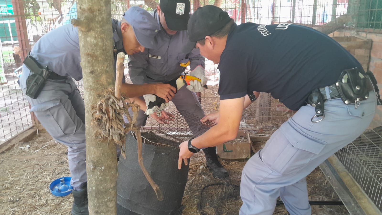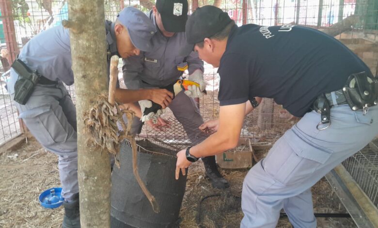 Del lugar se retiraron un tucán, un cuatí y una curiyú que fueron traslados por el personal especializado de U.E.P.E. hasta la Estación de Animales Silvestres a disposición de la Dirección de Recursos Naturales y Gestión, Dependiente del Ministerio de la Producción y Ambiente.