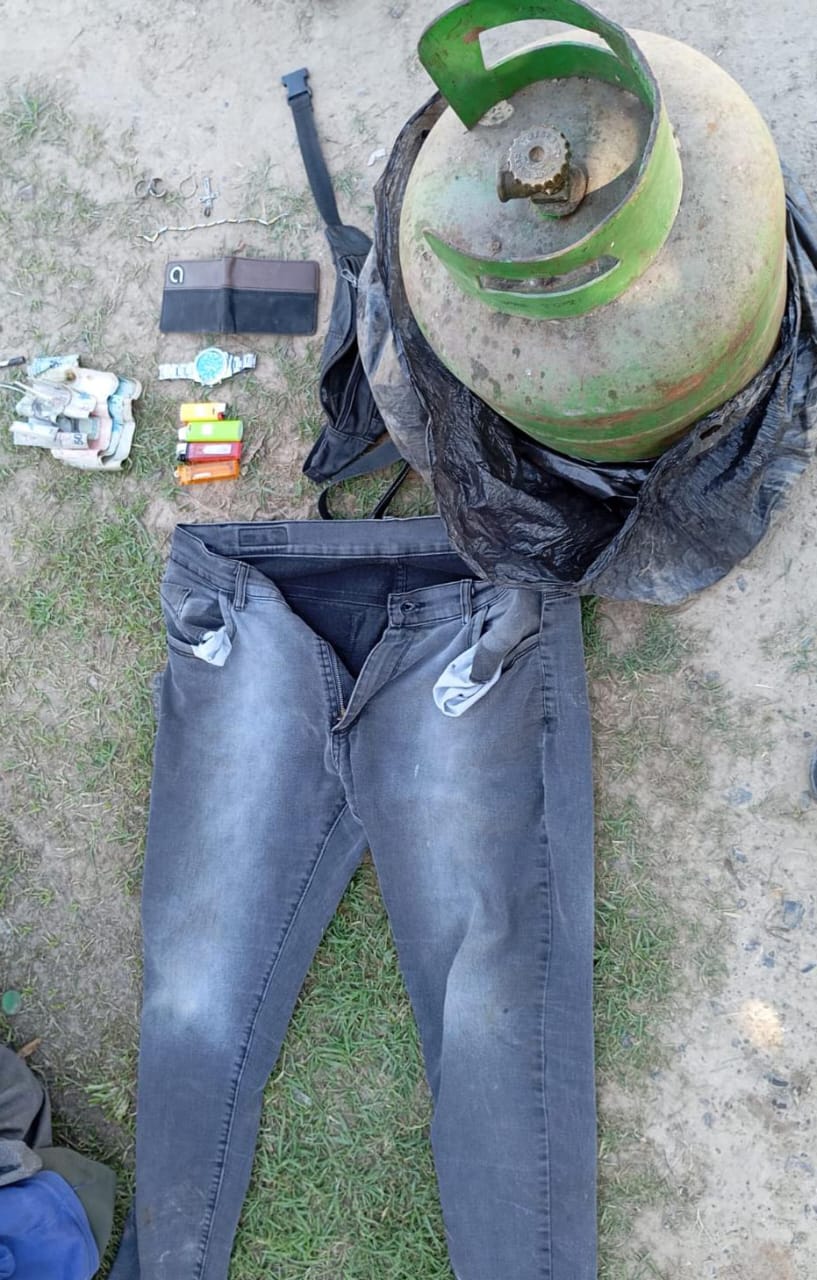 Inmediatamente fue interceptado, constatándose que llevaba consigo tuvo un de gas, un reloj, dinero, una billetera y otros elementos, no pudiendo justificar la propiedad de los mismos.