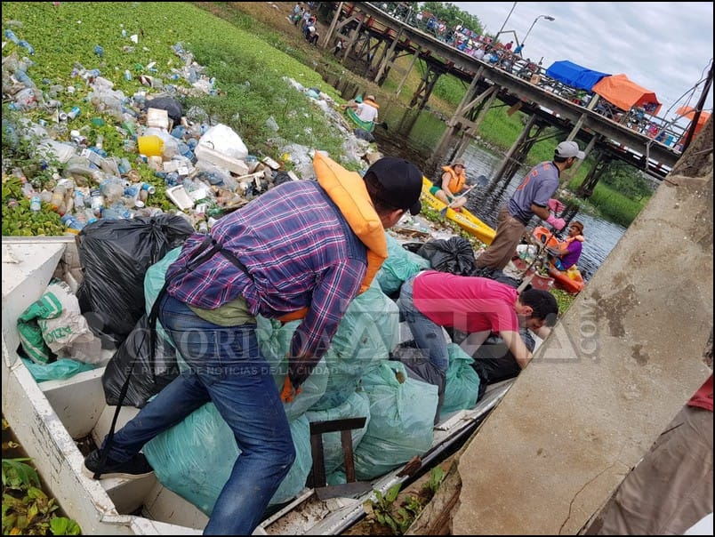 El domingo último se realizó la primera jornada de lo que se denomina #basurachallenge, se trata de un desafío, una intención que surgió de jóvenes de Nanawa y Clorinda en limpiar el cauce del río Pilcomayo que cruza por debajo de los puentes que unen a estas dos localidades de Paraguay y Argentina, es que mientras el río se encontraba con poco agua era realmente vergonzoso observar la cantidad de basura acumulada debajo del puente y el mal aspecto pero también el daño ambiental que esto genera, a nivel mundial existe una movida que apunta al cuidado de nuestro medio ambiente y estos jóvenes vieron bien poder hacer algo desde su lugar sin tener que esperar que otros hagan lo que ellos bien lo pueden hacer, es así que el domingo último dieron un gran ejemplo ya que muy temprano estuvieron reuniéndose en las cabeceras de los puentes e iniciando los trabajos de recolección de todo tipo de basura.