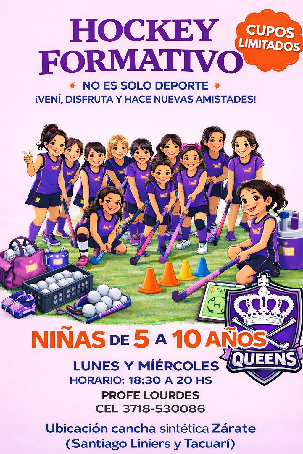 La profesora Lourdes Riveros esta iniciando una nueva etapa en lo referido a enseñanza del hockey, algo que gusta mucho y en Clorinda existen alternativas a las que ahora se suma la escuelita “Queens”. La responsable de dicha escuelita comentó que es una nueva etapa con esta propuesta que apunta a darle ese espacio donde niñas de 5 a 10 años puedan crecer en el deporte, que incluso va mas allá de lo estrictamente deportivo.