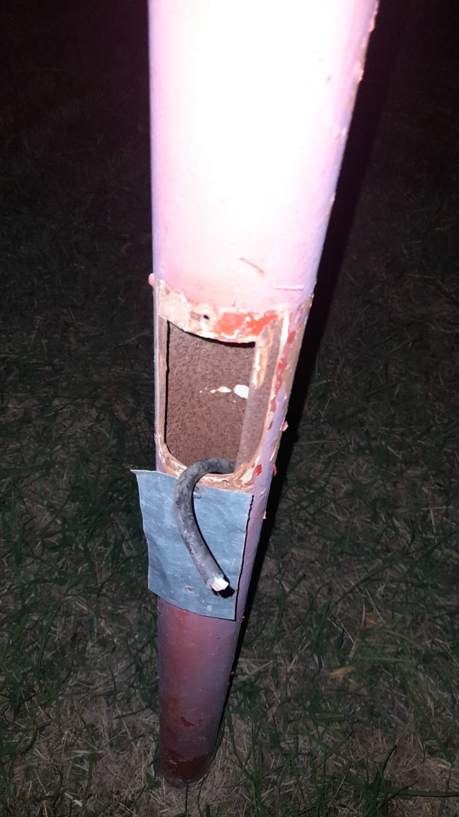 Pasada las 20:30 hs. Personal de Mantenimiento Eléctrico que forma parte de la guardia nocturna estuvo recibiendo la novedad de que parte de la lumínica del predio de la Virgen Nuestra Señora de los Ángeles no estaba funcionando. Por ello se desplazo uno de los equipos de trabajo para verificar y se encontraron con que se robaron cables de las columnas de iluminación.