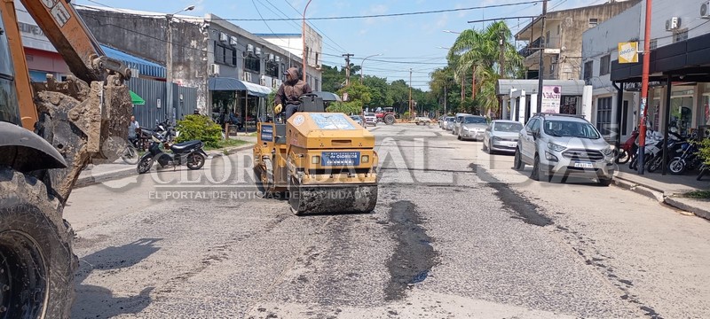 La secretaria de obras públicas a través del equipo de bacheo estuvo este miércoles por la mañana con tareas sobre avenida San Martín, concretamente lo que se estaba haciendo era el cerramiento de juntas separadas, pero también el bacheo con material en frío de ciertos sectores puntuales.