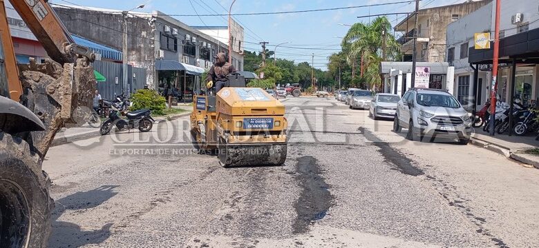 La secretaria de obras públicas a través del equipo de bacheo estuvo este miércoles por la mañana con tareas sobre avenida San Martín, concretamente lo que se estaba haciendo era el cerramiento de juntas separadas, pero también el bacheo con material en frío de ciertos sectores puntuales.