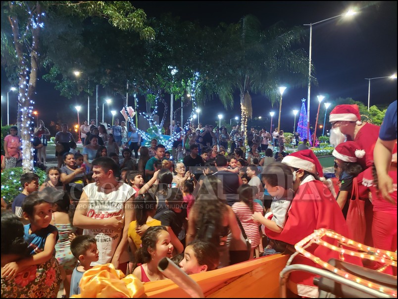 El pasado viernes por la noche Papa Noel comenzó su recorrida por la ciudad, así se pudo ver en varios sectores cerrando su presencia en la plazoleta Juan Domingo Perón, desde las 19 hs. partió desde el barrio San Cayetano arranco este recorrido del carro montado y preparado por la rama femenina de Hombre Nuevo Formoseño y desde ese lugar primeramente se trasladaron hasta el barrio ACA donde fueron recibidos por el Presidente del Concejo Deliberante Ariel Caniza, la Concejal Mónica Acosta y por supuesto los niños y padres del barrio. Estela Candia actual Concejal esta como coordinadora de acciones de Papa Noel y nos comentaba que cada año hace ya varios años programan esta actividad que busca simplemente llevar alegría a todos, contagiar el clima navideño y que se disfrute una época muy especial para todos.