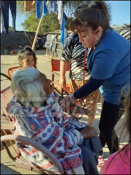 Posteriormente el equipo de trabajo se trasladó hasta el sector del centro de evacuados de la plaza Maradona en donde se procedió a realizar control general a los vecinos que allí se encuentran y entendían necesitaban de un control preventivo como el que se realiza frecuentemente. También de ser necesario se estuvo medicando a aquellas personas que ya se sabe necesitan de algún medicamento en particular. Concluido el trabajo en ese lugar este equipo se trasladó hasta la placita ubicada en avenida 9 de Julio y Costanera donde se realizó similar control a los vecinos allí asentados que se encuentran evacuados y en su mayoría son de la vecina localidad, la atención medica es general y desde el gobierno provincial se trabaja en la atención de manera igualitaria para todas las personas y con este tipo de tareas se deja en evidencia que se da cumplimiento a las normativas de las autoridades.