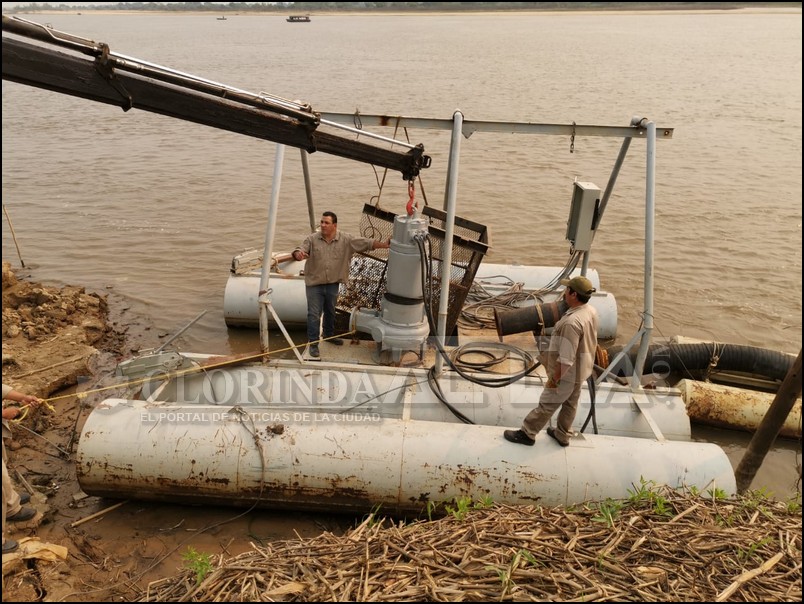 PERSONAL DEL SPAP DE CLORINDA TRABAJO EN COLOCACIÓN DE BOMBA EN LA TOMA DE AGUA DE PILCOMAYO