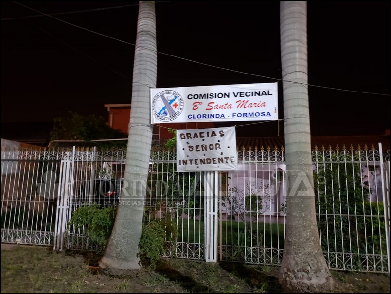 Tras la activación de la lumínica Celauro y los funcionarios y vecinos recorrieron el sector para apreciar el notable cambio del barrio, en esa reducida recorrida recibió el agradecimiento de aquellos frentistas que se mostraban muy contentos con esta importante obra que beneficia a todo el sector, en este caso del barrio Santa María, y justamente los vecinos hicieron un cartel a modo de agradecimiento por estas obras.