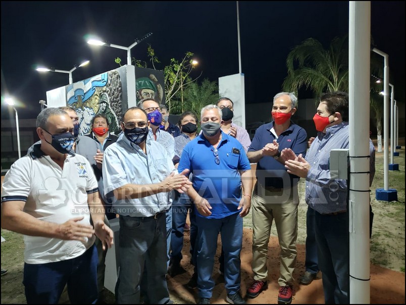 En horas de la noche del viernes el Intendente Manuel Celauro estuvo poniendo en funcionamiento la nueva lumínica de la plazoleta Héroes de Malvinas ubicada en la intersección de avenida Tucumán y Alberdi, estuvo acompañado por su equipo de trabajo tanto del Poder Ejecutivo como Legislativo y sirvió para poner en funcionamiento la nueva lumínica que es de tecnología led. Se tratan de 18 columnas de las cuales 16 son simples y dos dobles ubicadas donde está el monumento a los caídos en Malvinas. Se trata de un lugar estratégico que es símbolo en el ingreso a la zona centro de la ciudad y por tal motivo este cambio marca notablemente lo que es l presencia y seguridad del lugar.