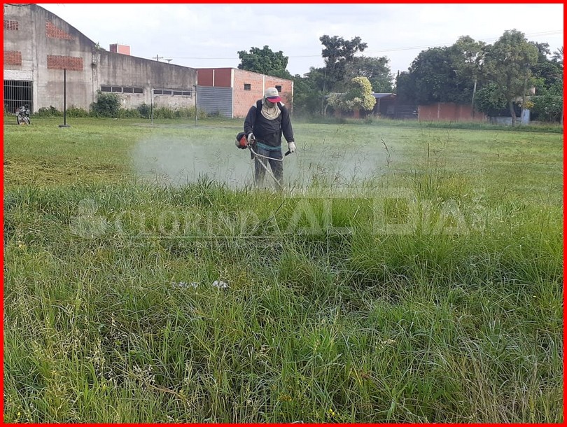Al mismo tiempo, otro grupo de trabajo estaba haciendo foco de las mismas tareas, pero en el espacio verde ubicado detrás del edificio del Centro Educativo OtorinoZanon, quienes se encuentran a cargo de estas tareas nos manifestaban que en la medida que el factor climático lo permita van avanzando con distintos lugares, priorizando sectores de espacio público, alrededores a instituciones, avenidas principales y otras más. La disponibilidad de equipos permite ir avanzando de forma rápida, pero la cuestión de estar trabajando con un reducido grupo de empleados es lo que limita un avance aún mayor.