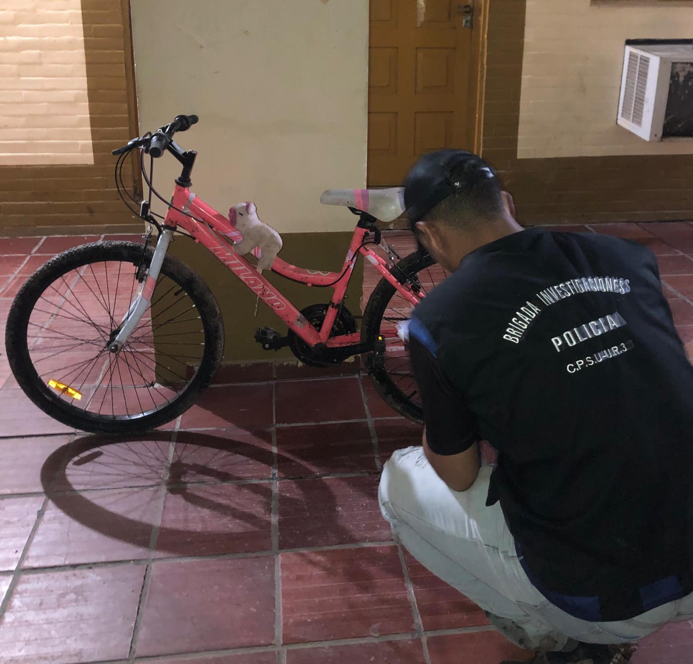 El Primer procedimiento se llevó a cabo en horas de la madrugada del viernes, cuando los efectivos policiales realizaban patrullaje en prevención de distintos hechos delictivos, en el B° San Miguel, logrando en un momento dado observar a un masculino trasladar una bicicleta de color rosado, al intentar identificarlo el mismo arroja el rodado, saliendo a correr perdiéndose en los pasillos internos del mencionado barrio, procediéndose al secuestro preventivo del rodado. Horas después en la comisaria jurisdiccional se hace presente el damnificado quien denuncio la sustracción de la Bicicleta, rodado 24 de color rosado, la cual ya había sido secuestrada por los efectivos policiales.