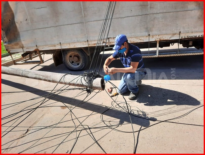 Nuevamente un conductor de un camión, en este caso de una empresa local, destruye parte de la estructura de los servicios de la Cooperativa Clorinda, dejando sin servicios de video cable y teléfono a decenas de familias.