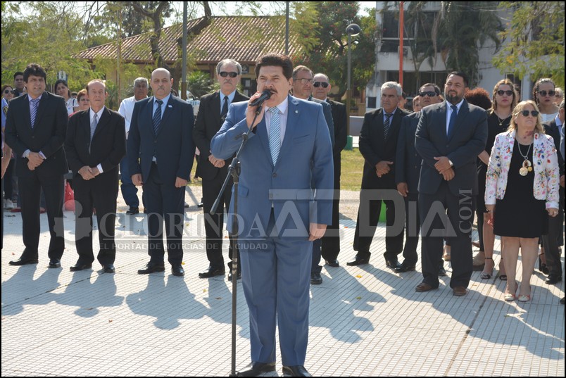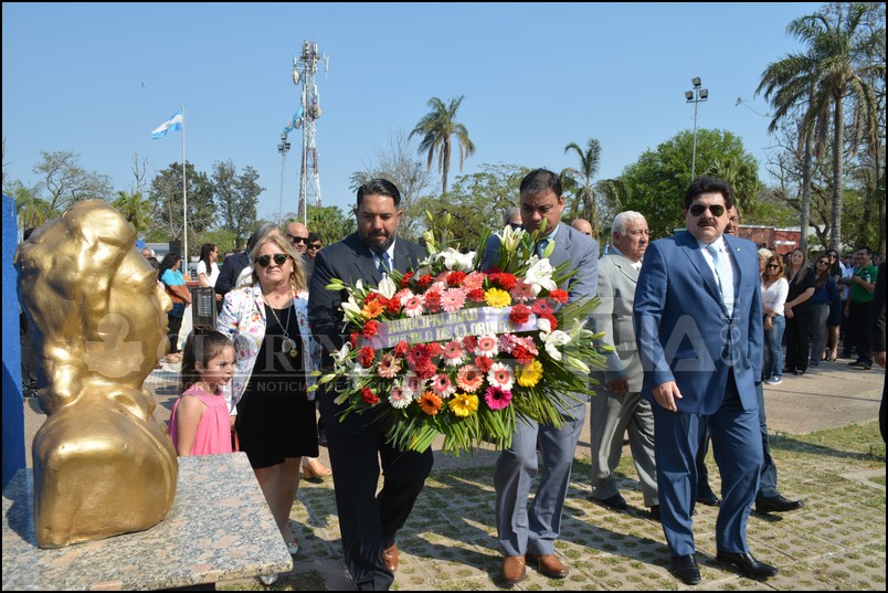 El acto estuvo encabezado por el Intendente Manuel Celauro y lo acompañaron el Presidente del Honorable Concejo Deliberante Ariel Caniza, el Diputado provincial Alejandro Navas, los Concejales Fermín Caballero, Edith Pantich e Isac Villamayor, funcionarios de los poderes ejecutivo y legislativo locales, representantes de organizaciones no gubernamentales, autoridades de las fuerzas de seguridad, Gendarmería Nacional, Prefectura Naval y Policía de la Provincia, delegaciones escolares encabezadas por la Delegada Zonal de Educación Profesora Pabla Silva Martínez, ex Intendentes, el Administrador de la Aduana de Clorinda Alberto Rodríguez, entre otras autoridades más. Tras el saludo protocolar a la agrupación 29 de septiembre se dio lugar a la entonación de los Himnos y Marchas correspondientes, seguidamente a la colocación de una ofrenda floral al pie del busto y doña Clorinda Pietranera de Bossi, ceremonia a cargo de las autoridades presentes.