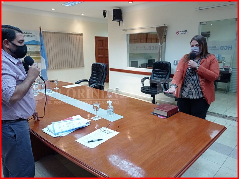 Para dar comienzo ala sesión ordinaria, se dio la elección por mayoría y juramento de Natalia Romina Sánchez para el cargo de subsecretaría legislativa del Honorable Concejo Deliberante para el periodo comprendido hasta el hasta el 10 diciembre 2021 inclusive, el Presidente del HCD, concejal Ariel Caniza tomó el juramento.