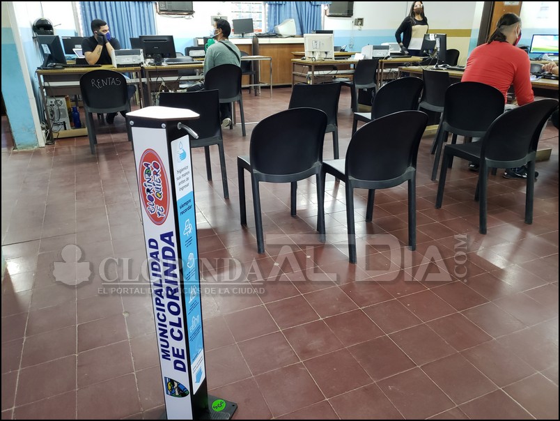 Ya cada área del municipio venia cuidando los detalles sanitarios al ingreso de las personas pero en el inicio de esta semana se pudo ver a más elementos de seguridad sanitaria que están dispuestos especialmente en sectores de mayor circulación de personas, al ingresar al edificio municipal se encuentra una mesa de control en la que se le solicita a la persona ser controlada en cuanto a la temperatura, eso acompañado a los datos personales de la persona y allí también se puede hacer el uso del alcohol en gel que se utiliza desde un dispenser de, cumplido con esos pasos se puede acceder a las distintas dependencias del municipio. Vale decir que entre las áreas que también tienen este elemento de seguridad se encuentran áreas como al de Comercio, Rentas, Inspección Urbana y Transito por mencionar algunas.