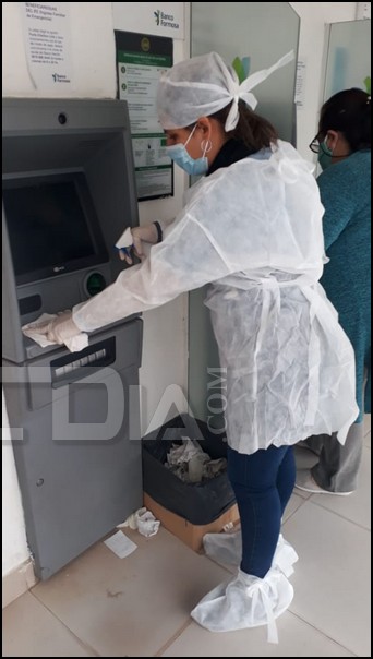La tarea de desinfección en los cajeros automáticos de los distintos bancos es continua desde el inicio de esta pandemia sin pausa, pero también se hace reiterativa la recomendación a la comunidad en general de realizar la desinfección de sus manos tras el uso de los mismos. También los controles en los puntos de ingreso como ser repatriación e ingreso y egreso de camiones de carga. No debemos olvidar que la lucha contra el dengue es continua con fumigaciones espaciales y trabajos focales en los barrios de la ciudad.