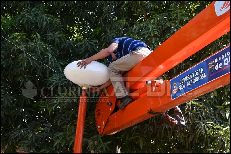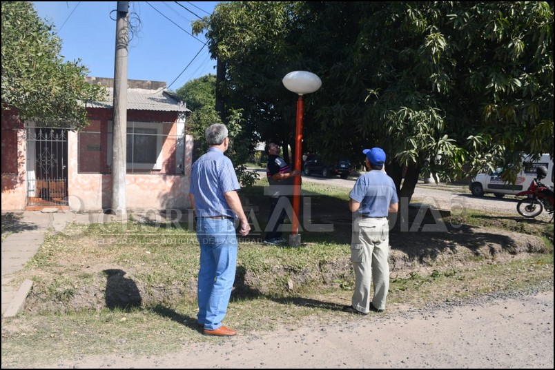 El equipo a cargo del señor Eugenio Mereles viene trabajando en el barrio de las 300 viviendas con una tarea puntual de ampliación del alumbrado público para ese barrio, esto se estuvo iniciando tiempo atrás con la colocación de las columnas bajas que ya se posicionaron en el lugar correspondiente y a partir de eso hora se avanza en la siguiente etapa de colocación de artefactos y elementos protectores, todo mano de obra municipal, estas columnas que fueron colocadas son reutilizadas, elementos que fueron recuperados de otros puntos de la ciudad y que e pusieron en condiciones para su reutilización.