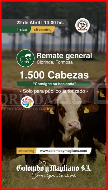 Tras haber solicitado los permisos correspondientes como ser ante el Ministerio de la Producción y contar con el protocolo necesario, estarán realizando este primer remate del año en día jueves 22 de abril en horas de la tarde, se concentrarán la mayor cantidad de animales en la rural y se tendrá una imagen genera y particular de cada lote ya que el sistema de remate será presencial y también vía streaming.